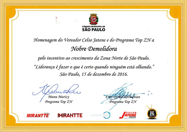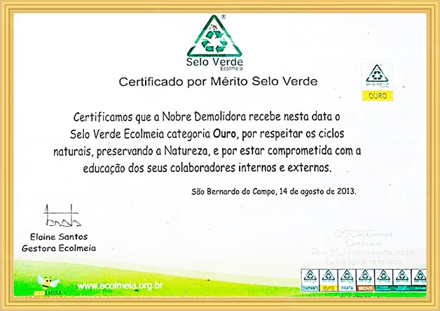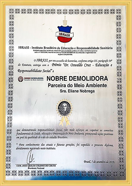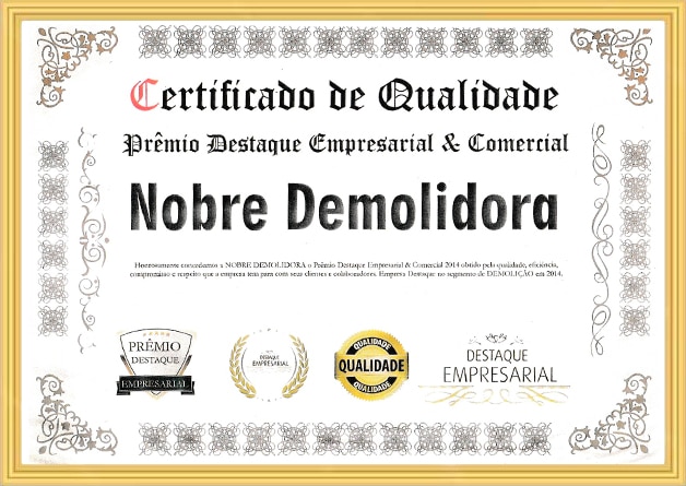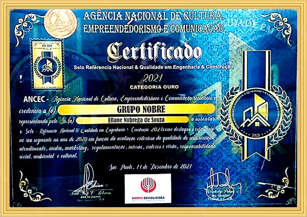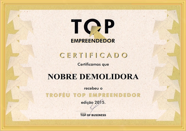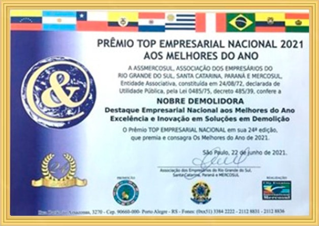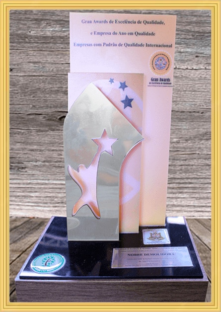 A Nobre Demolidora se destaca como a empresa mais premiada do Brasil no setor de demolição em todos os níveis de complexidade, consolidando sua reputação por excelência e inovação. Ao longo de sua trajetória, a empresa acumulou diversos prêmios de reconhecimento, concedidos por importantes instituições do setor. Entre os prêmios mais relevantes, destacam-se: